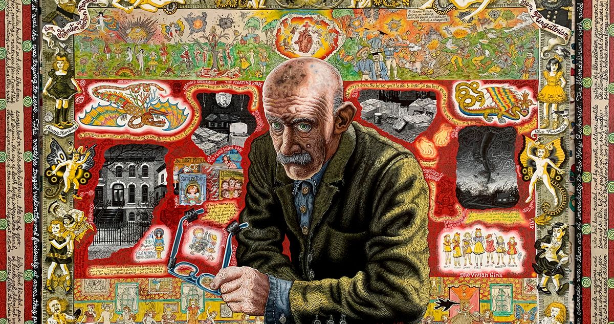 Art: Joe Coleman, Henry Darger, 1998. Acrylic on Panel, 24 1/4 x 30 1/2 Inches (61.6 x 77.5 cm)