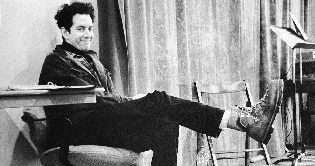 Jonathan Larson at rehearsal in December 1995, upstairs in the annex at New York Theater Workshop. That’s his libretto in the looseleaf binder. Photo: Anthony Rapp