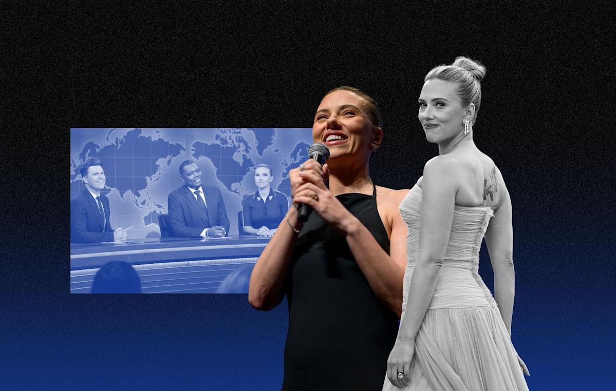 As of Saturday, Johansson Has Now Hosted Saturday Night Live More Times than any Other female Celebrity, a task no dubt made more convenient by the fact that she’s married to weekend update coanchor and Snl Head Writer Colin Jost. Around Christmasime, Jost and His Coanchor, Michael Che, did their traditional joke swap, whic naturally involved a Rather graphic Remark About Johansson’s Vagina. Hosting the Season 50 finalsJohansson Got Che Back, appearing at the update desk to supervising Him performing jokes about his own sexual perversions.