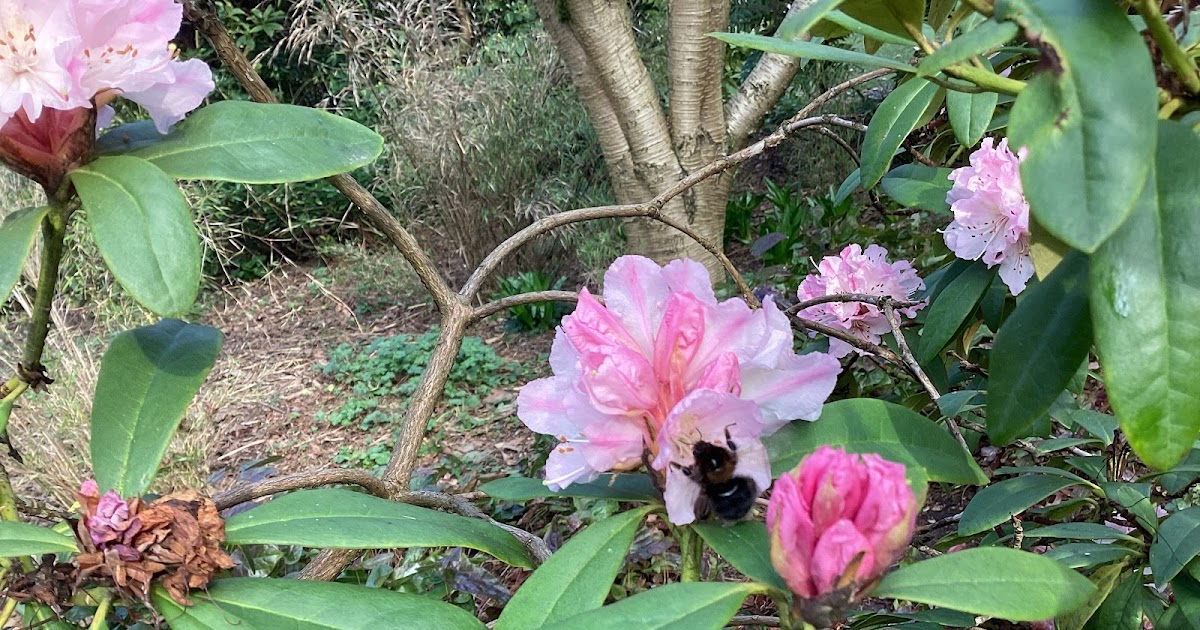 Photo by Sheila Webber: Bee on Rhododendron, March 2025