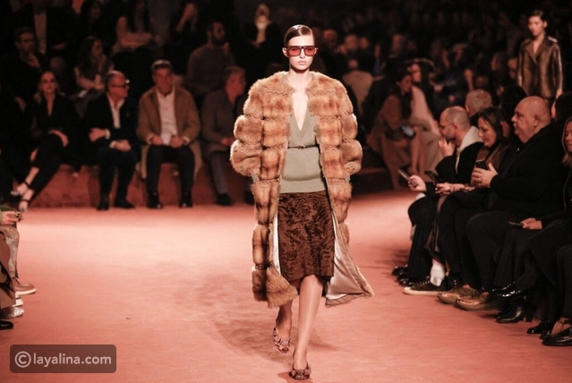 - لطالما كان الفراء جزءا من هوية فندي ، لكنه ظهر في هذه المجموعة بطرق مبتكرة ، تم المعاطف بدون بأقمشة الموهير القابلة لللالة ، بينما جاءت أغية الرأس المصنوعة من صوف الغنم بأشكال مستوr. الضمة.