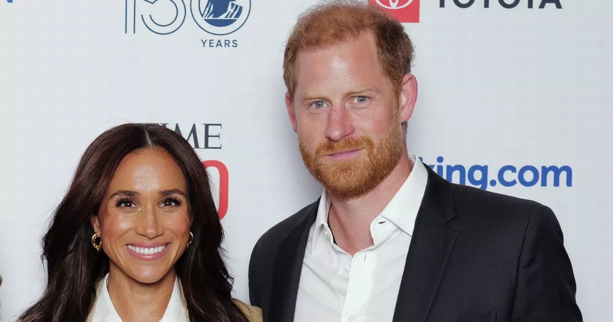 Meghan Markle, in a beige suit, and prince harry, in a dark suite, at an event in 2025.