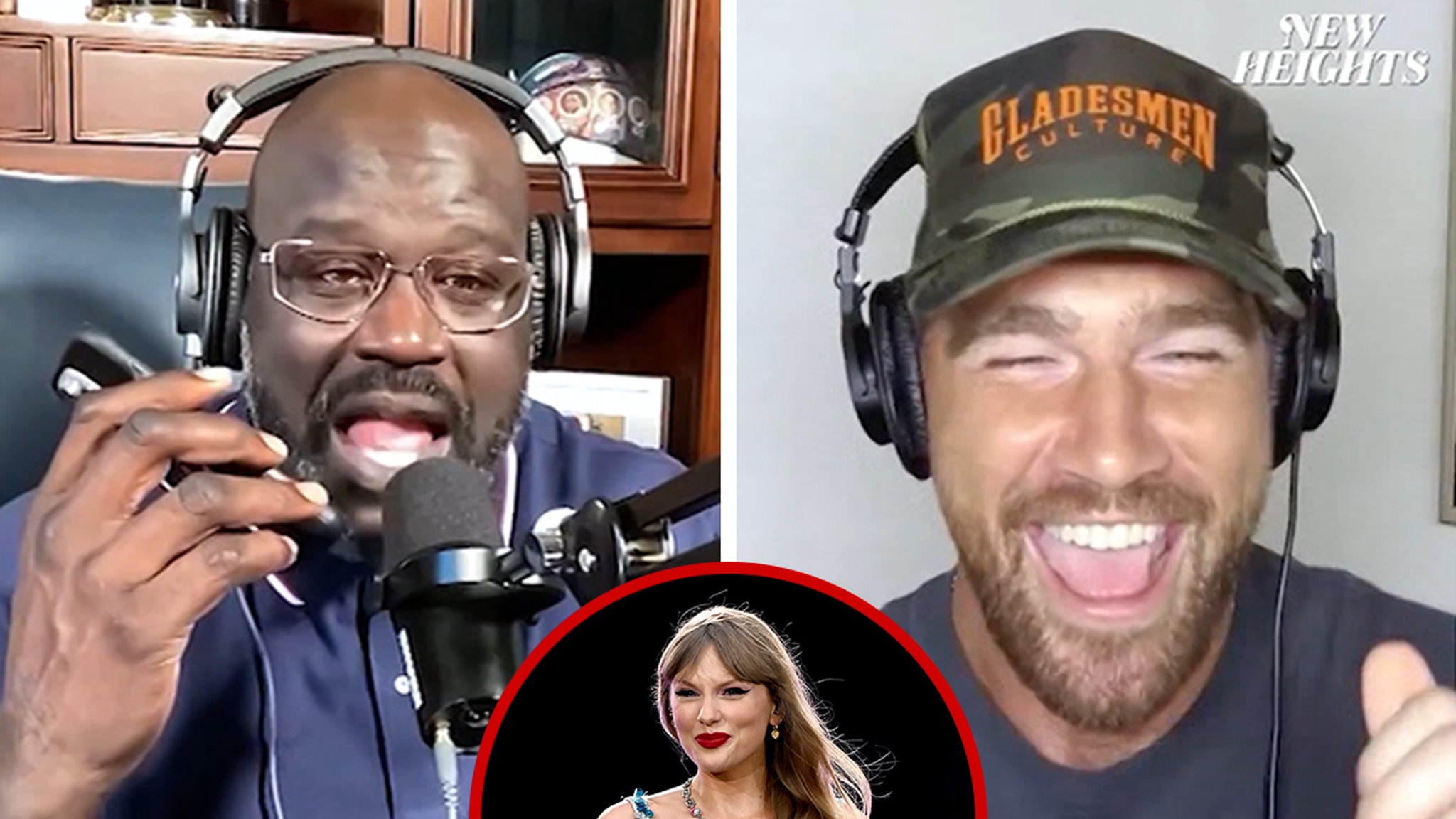 The Kansas City Chiefs Tight End Supported HIS Pop Superstar Girlfriend on Wednesday’s Episode of His and His Brother Jason Kelce‘S “New Heights” podcast, with special guest Shaquille o’neal.
