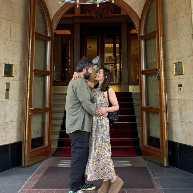 وأعلنت الممثلة التركية عن خوبتها من خلال صورة لها مع العريس نشرتها عبر خاصية ، ، وكان اعتمها على لمسات بسيطة من المكياج بألوان طبيعية هادئة تبرز ملامح الجميلة وبارتداء خاتم خوبة ناعم.