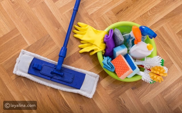 • استخدمي ممسحة رطبة قليلاً لمسح الأرضيات أربع مرات في السنة فقط، وذلك في حال المواظبة على التنظيف الدوري والمستمر لها، وفي حال لم تتسخ ببقع قوية كالطين أو أي بقع لزجة.