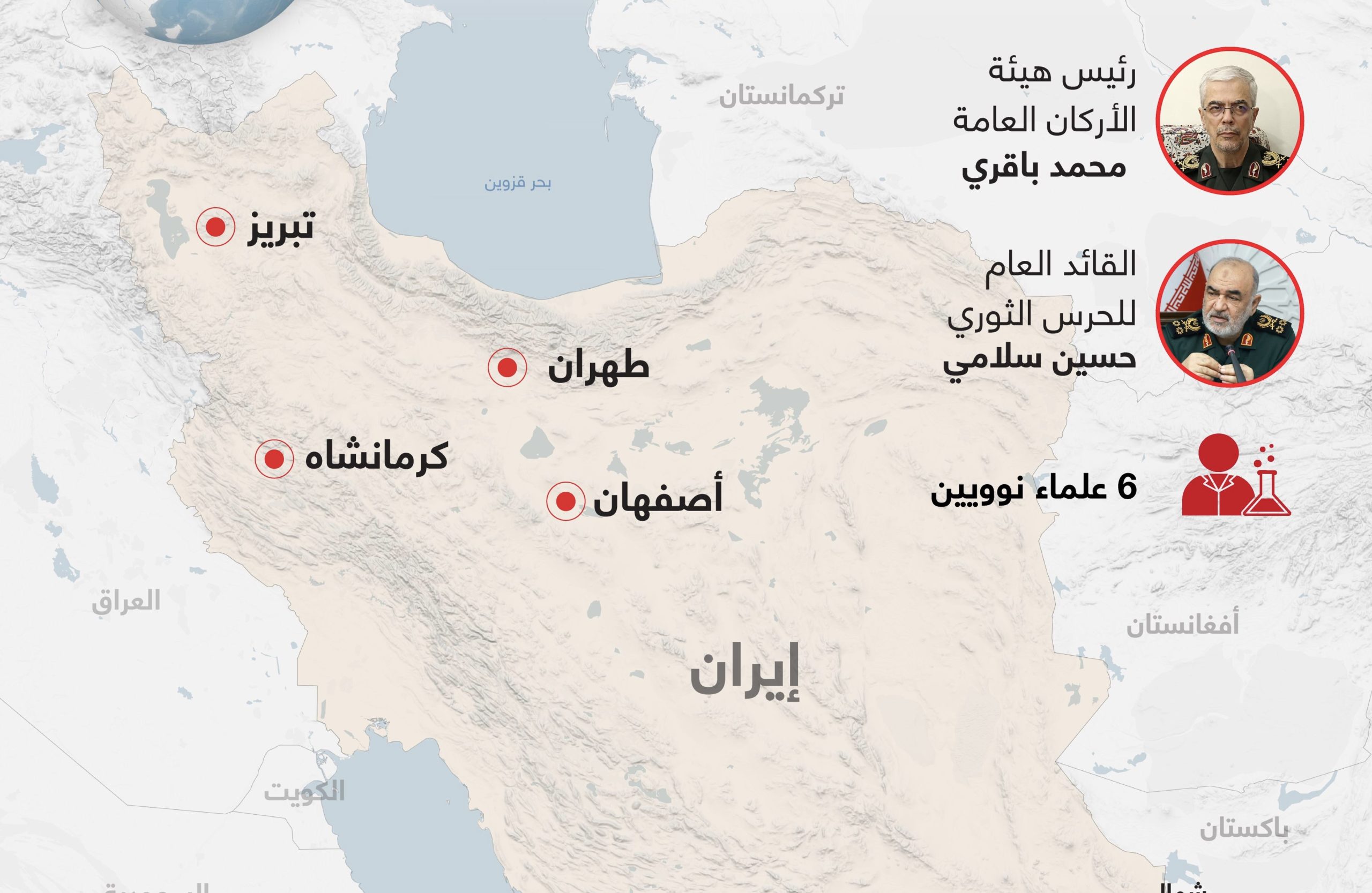 وفي حصيلة أولية لعملية “الأسد الصاعد” ، قُتل: رئيس هيئة الأركان العامة محمد باقري والقائد العام للحرEC الثوري سلامي و 6 علماء نووييين ”