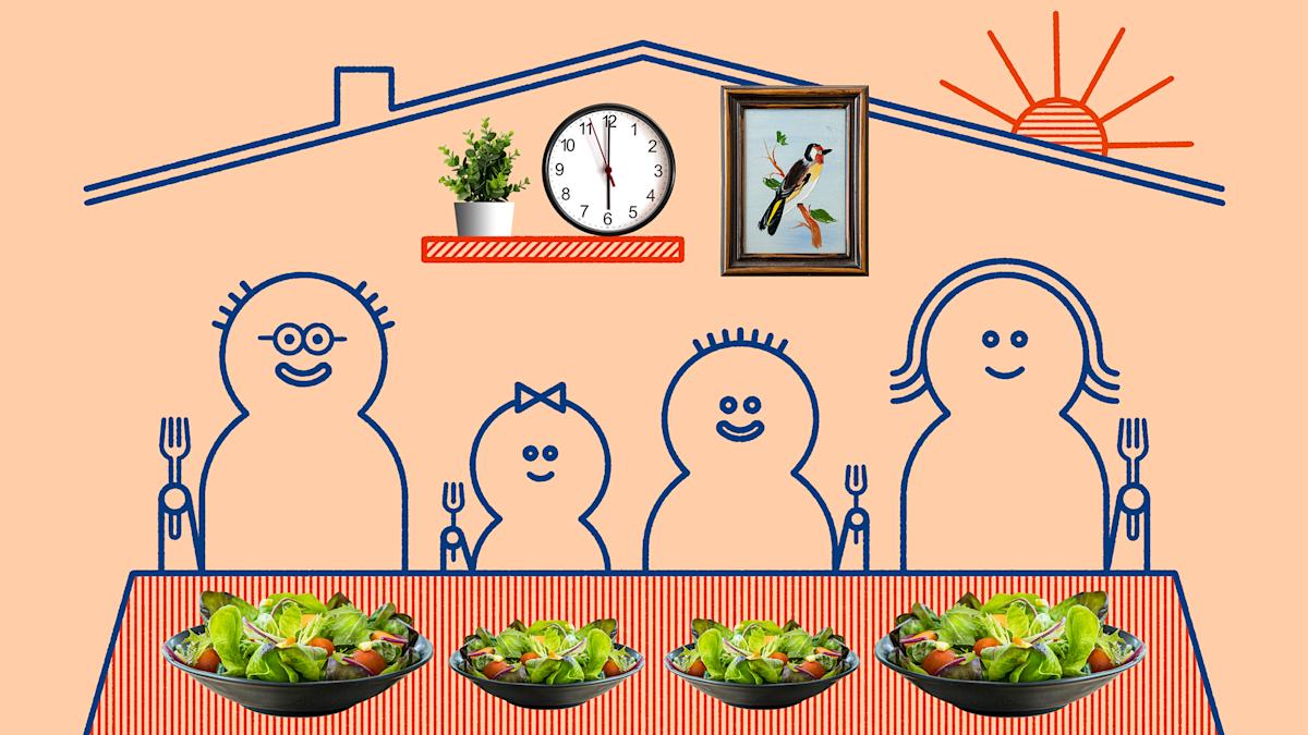 Some Families eat Dinner at the Same Time and in the Same Way Every Night. (Photo Illustration: Mikel Jaso for Yahoo News, Photos: Getty Images)