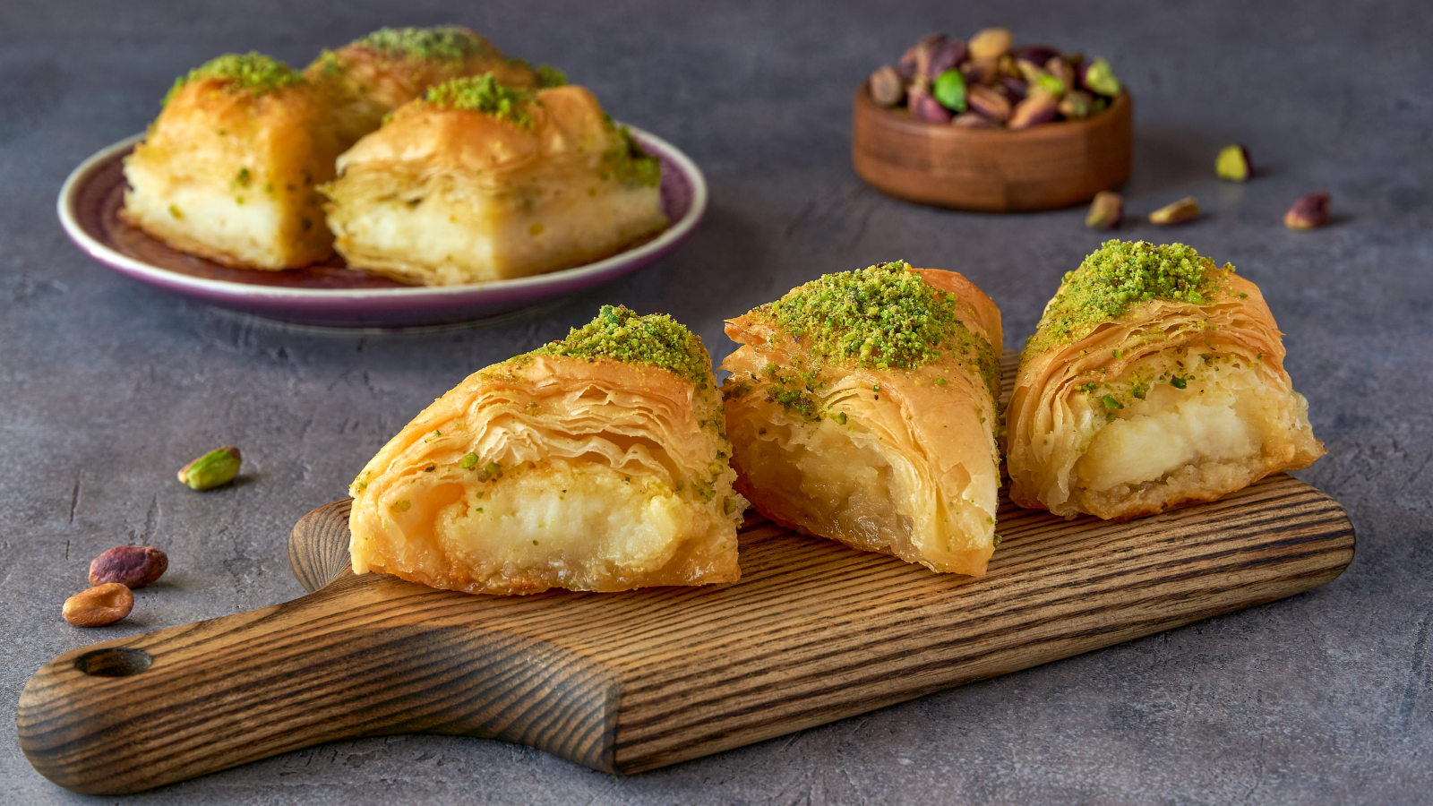 في عالم الحلويات الشرقية ، تبقى البقلاوة بالقشة إحدى أشه الوصفات وأكثرها شهرة في مختلف أنحاء الوطن العربي. فهي حلوى تجمع بين قرمشة عجينة الفيلو ونعومة القشة الغنية.