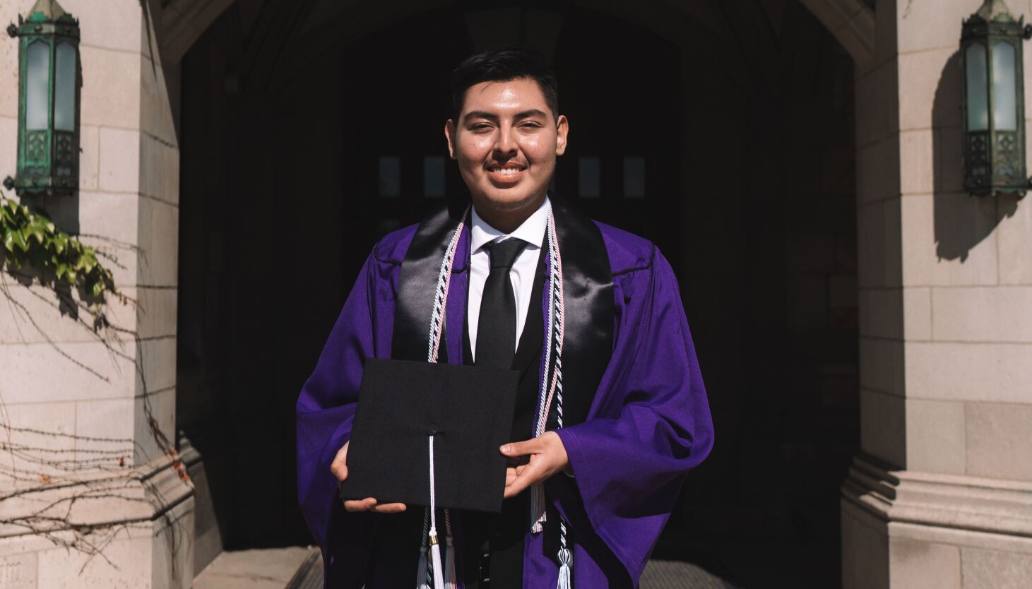 In the days before he graduates from northwestern university, bryan cárcamo has sent his pars in california Photos of Himself in a Black suite draped in a purple gown with honor cords to wear for the ceremony.