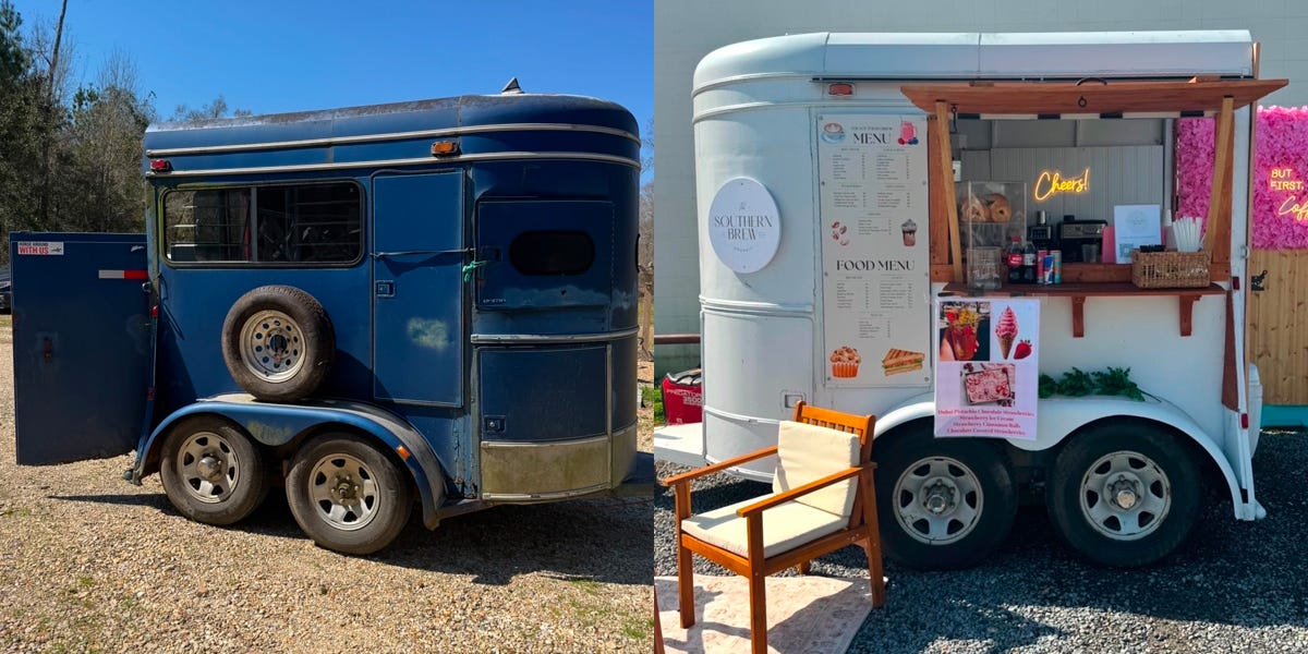 By March, my husband and i were driving to baton rouge to buy what was woul the Base of my Mobile Coffee Bar: An Old Horse Trailer.