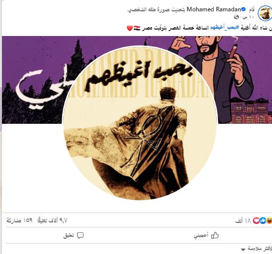 وردًا علي هذا ، كتب محمد رمضان منشور من خلال حسابه الرسمي موقع التواصل الاجتماعي فيسبوك علق: ” الإاعة الإسرائيلية .. لبسي في كوتشيلا تصميم un (المصرية) (فريدة تيمراز) والصدرية مستوحاه من تماثيل الفراعن و و و و و و و و و و. بالعملة المصرية الفضة واضاضافة عليها كيب اسود فرعوني .. بس السؤال بأمانة يا إسران غير موفق زعلكم هل علمصر امريكا فرحكم ؟! “.