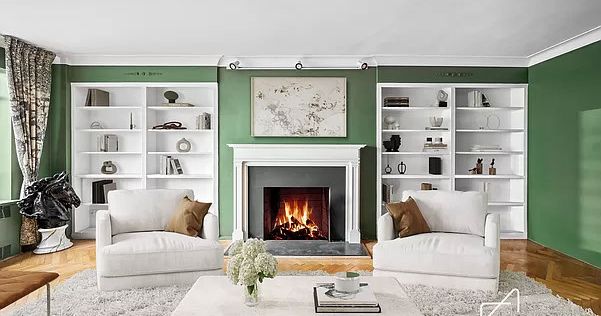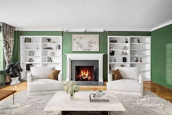 The Built-in Bookshelves and Wood-Burning Fireplace Ares of Hill Lenox Hill Lis- Photo: Courtesy The Agency