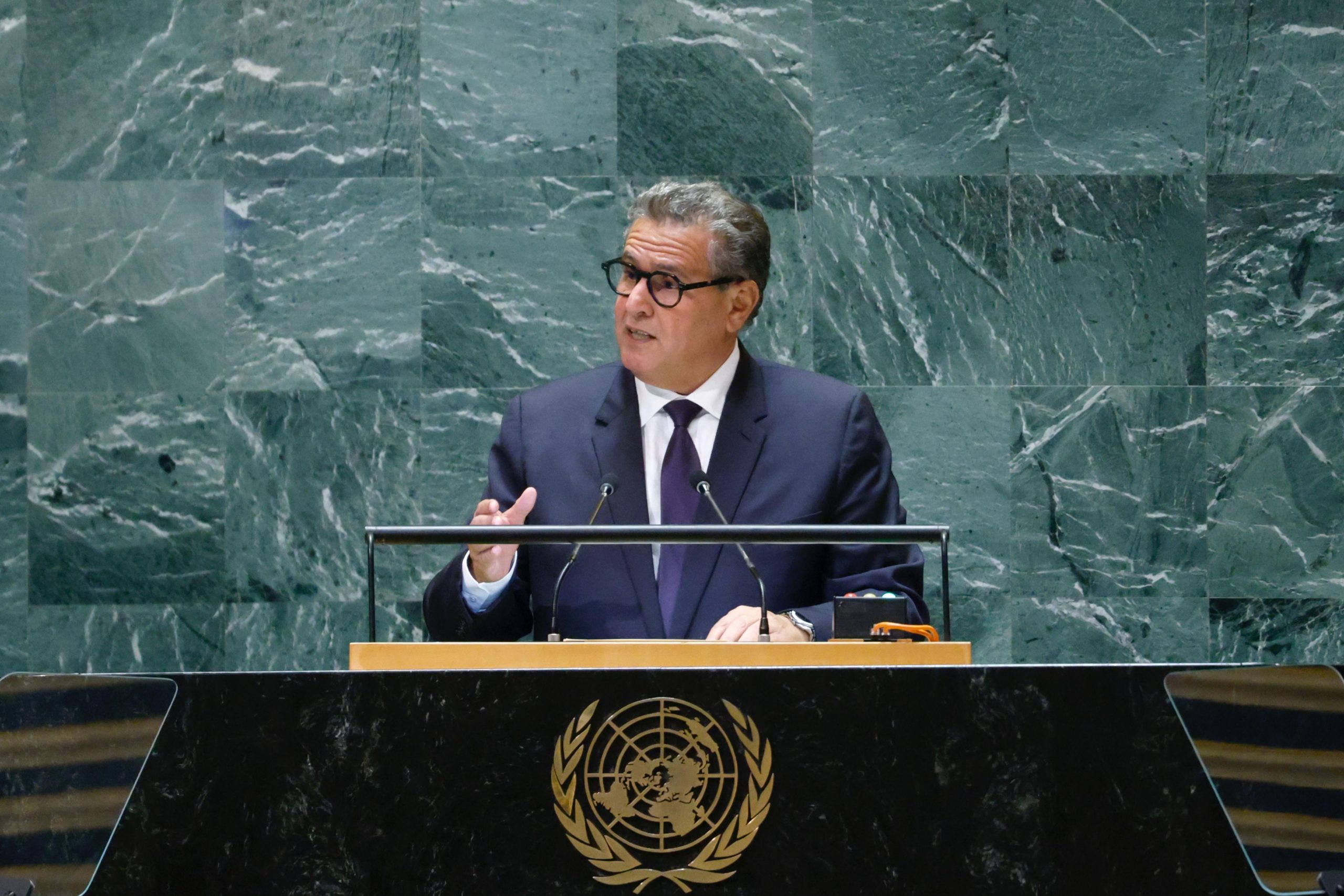 بتعليمات سامية من صاحب الجلالة الملك محمد السادس ، يترأس السيد عزيز أخنوش ، رئيس ، ، الوفد المغربي المشي المشي المشي المشارك في أشال الدورة الثمانين للجمعية العامة للأم المتحدة ، التي تنعقد بنيورك.