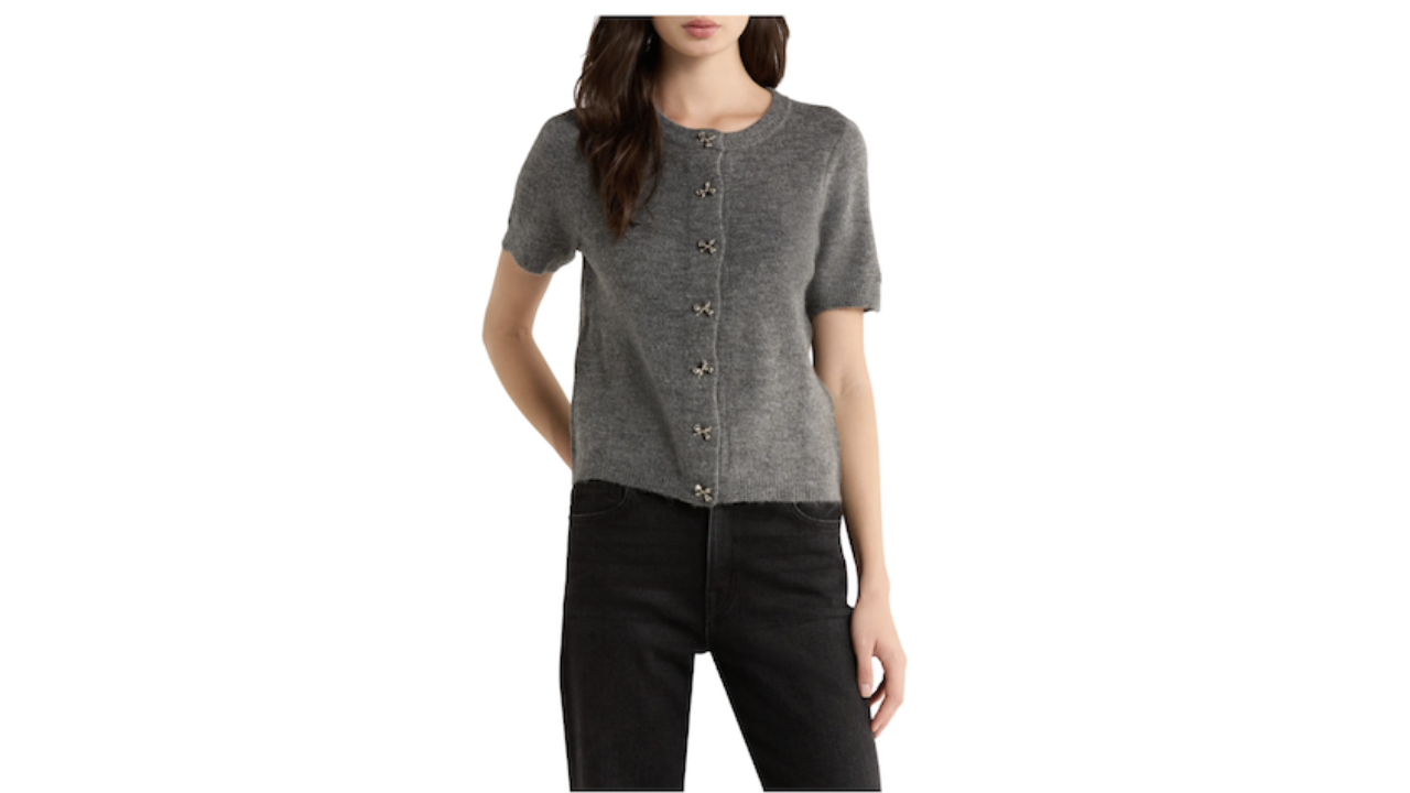 If it is not quite sweater weather in your neck of the woods, opt for this short-sleeved cardigan. Complete with the sweetest little bows for buttons, this sweater is a great option for those earlyn days aren’t all that chilly.