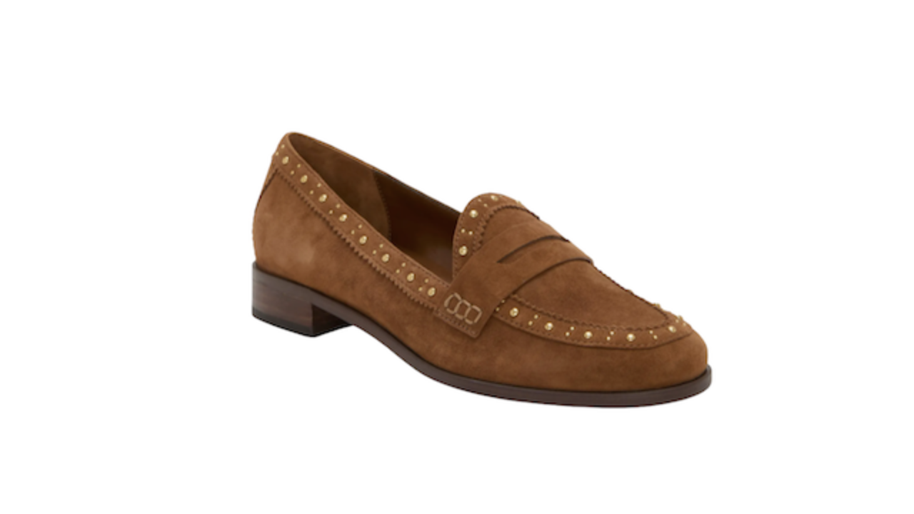 Who Loafers have to be basic and boring? Swim with! These Penny Loafers from Vince Camuto Feel Both modern and Classic, thanks to the timeless shape and the scattered gold studs.