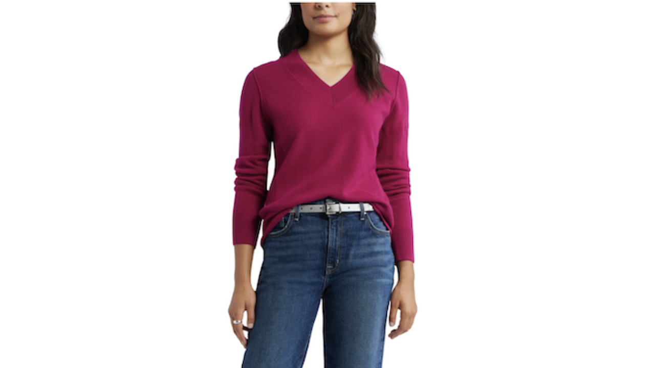 The V-Neck Design Has a Slightly Slouchy Fit, and IT DOES COME IN FOUR OTHER NETHER SHADES IF THIS DARK PINK HUE ISN’T FOR YOU.