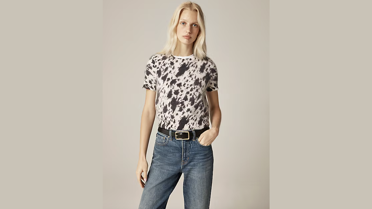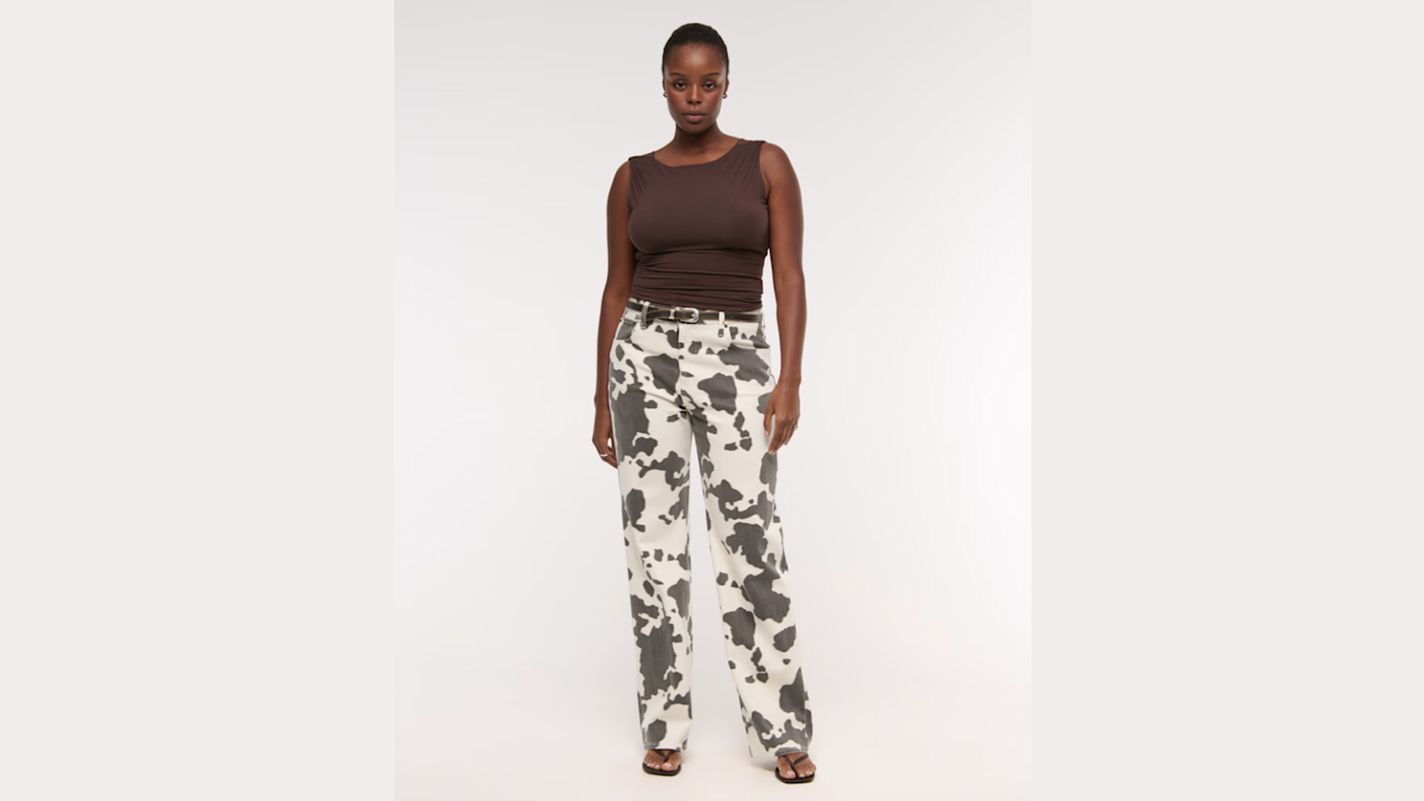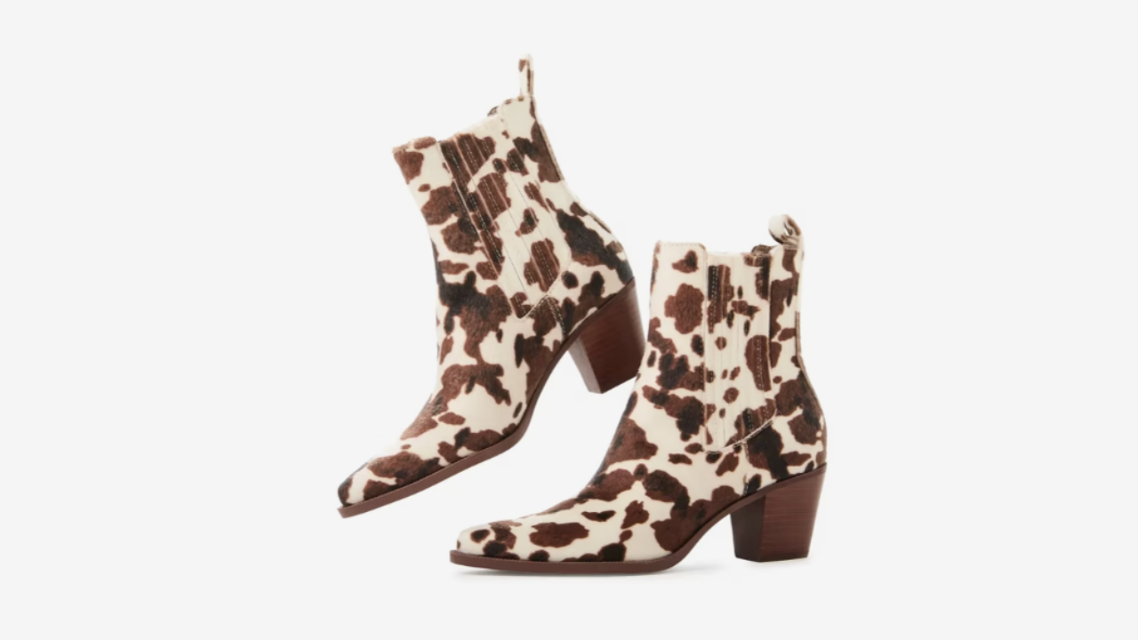 Ok, so last year, leopard print jeans were everywire. If you’re a fan, you can still find at the spots like Nordstrom or loft. But this season’s sought -after print is all about animal: Cows! Mooove Over Leopard Spots – Bovine patterns are here for fall. The Dark-Colored Spots Mimic the Barn Animal’s Natural, Irregular Marings. And we can’t say we’re too too surprised by the trend. With Western and British Countrycore Styles Dominating Stores Right Now, Cow Print Fits Right in.