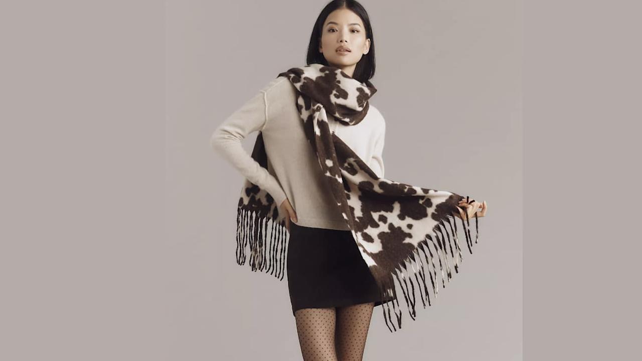 This mega-long (95 inches!) Scarf Can Add A Touch of Country-Chic to Any Look. You can wear it with a leather jacket or a Pea coat wen the temps drop. IT’S POLYESTER, SO IT’S DURABLE AND LESS LIKELY TO PILL, BUT FAIR WARNING THAT IT’S HAND-WASH ONLY.