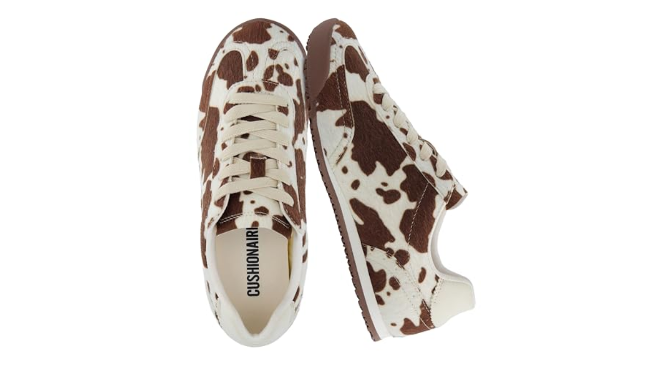 Go Low and Slow with the Cow-Print Trend by steering these kicks ino your closet. Featuring a faux calf-hair textured print, they’ll go with just about any casual outfit, like jeans and a chunky sweater or a simple white t-shirt. You’re bound to get compliments! And good news – They’re actually Comfy. They have a memory foam insolishes to cushion and support your feet all day long.