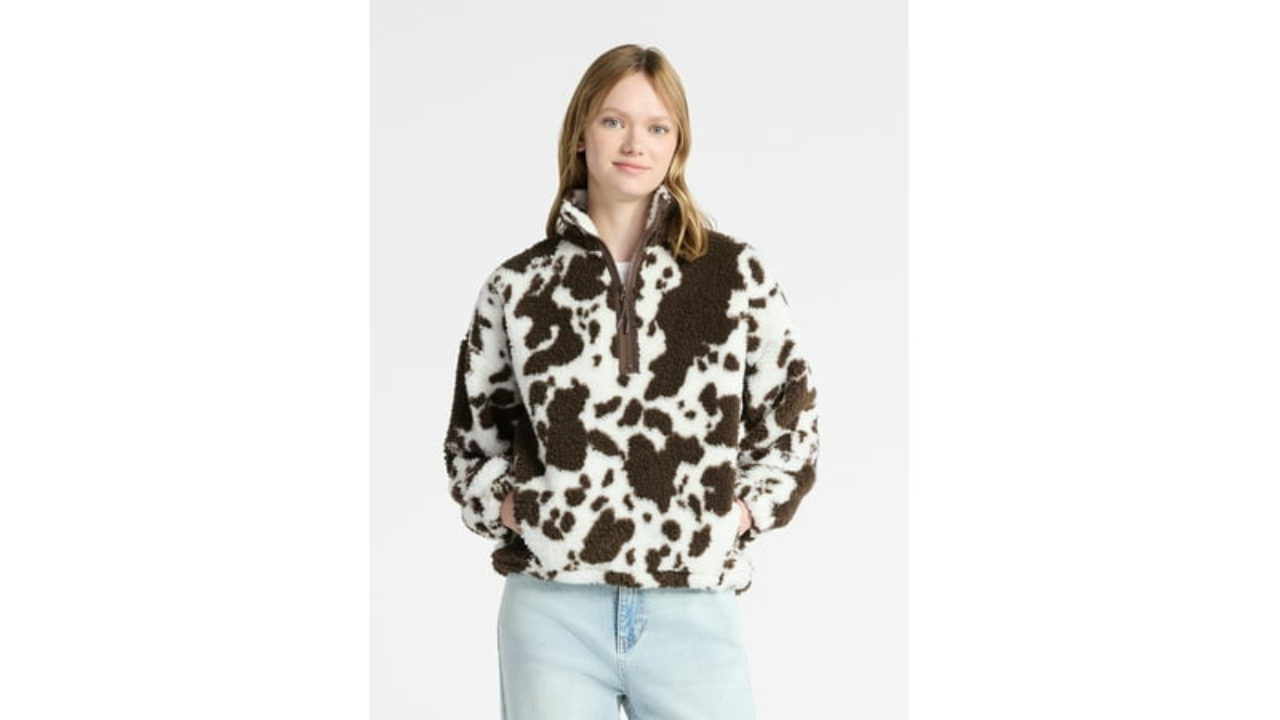 Hay Now! This PLUSH, LIVESTOCK-Inpired Fleece Layer is JUST WHAT YOU NEED FOR CRISP FALL DAYS AND SNOWY NIGHTS ATHE. It has a half-zip at the top and a drawstring at the waist, which you can tighten for a more blouses fit.