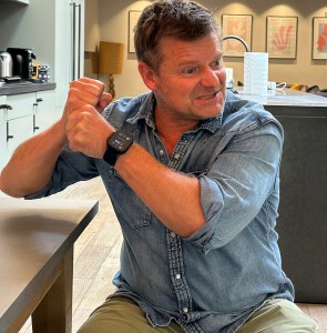 It’s so crazy because we’ve probably rubbed shoulders without realizing while he’s been doing his regular four-mile runs in the park while I’ve been walking our two dogs. “That park where I run is my sanctuary,” he declares. “My back is killing me, but I just have to do it. I just get to reach that point where you’re like, ‘Oh, remember the old days?’ Like, ‘Oh, I’m going to a wedding in two weeks. I’m going to lose 10 pounds,’ and you could do it. Now. It’s like, ‘Oh f*ck, man,’” he sighs.