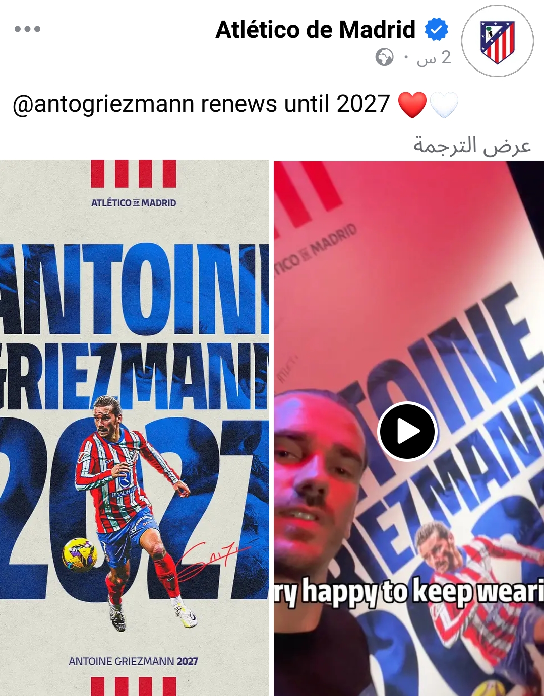 حسم النجم الفرنسي أنطوان جريزمان ، مهاجم أتلتيكو مدريد ، الجدل مستقبله ، وقر الاستمع الفريق المديديcing بعدما أعلن النادي ، اليوم الثنين ، تمديد عقده حتى 30 يونيونيويونيويويويويويويويويويوي their sequel to بحسب بيان رسمي عبر القنوات الإعلامية للنادي.