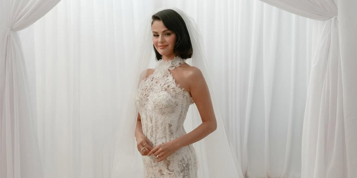 في منشور عبر حسابها الرسمي على “إنستغرام” ، شاركت سيلينا غوميز صورًect ظهرت وهي تقبّل زوجها وسط أجواء احتفالية أ مرتدية فستانًا أبيض بتصميم كلاسيكي بسيط عكس طابعًا تقليديدا.