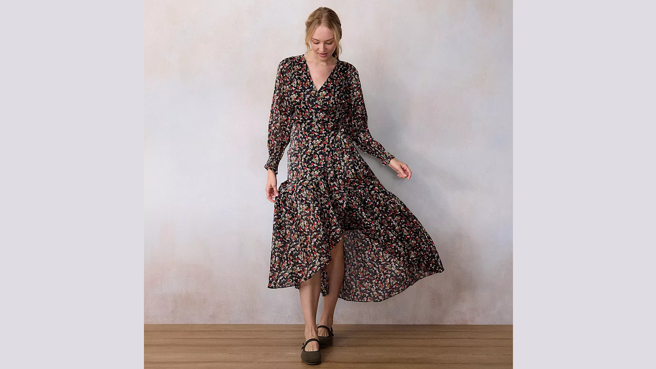 A WRAP DRESS LIKE THIS IS ALWAYS Going to give you that hourglass shape, thanks to its belt and flowy skirt. It comes in Seven Fall-Ready prints, Including This Dark, Moody Floral.