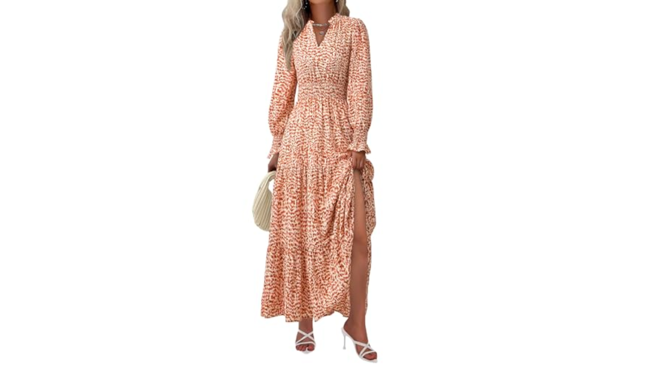 This Cheerful Maxi is Also Similar to Anthropologie’s Somersset Dress, but it has long sleeves with ruffles at the wrists and neckline for a little extra feminine. It comes in 20 Colors and patterns, with plenty that are perfect for fall.