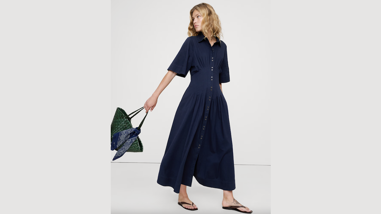 Here’s a good shirt Dress for Transitioning From Warm to Chilly Weather. IT’S 100% Cotton, and you can wear it with sandals, Ballet flats or boots. IT HAS CORESET-INSPIRED PLEATS AT THE WAIST FOR AN ULTRA-SLIMMING LOOK.