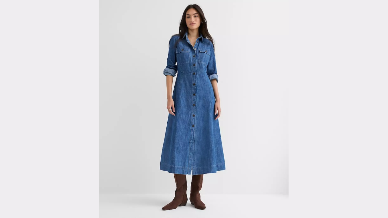 Denim Will Always Be in Style, and in a Shirt Dress, IT LOOKS Especilantly Chic. This style has an-line skirt that skims your lower half-a classic silhouette that look great on almost everyone.