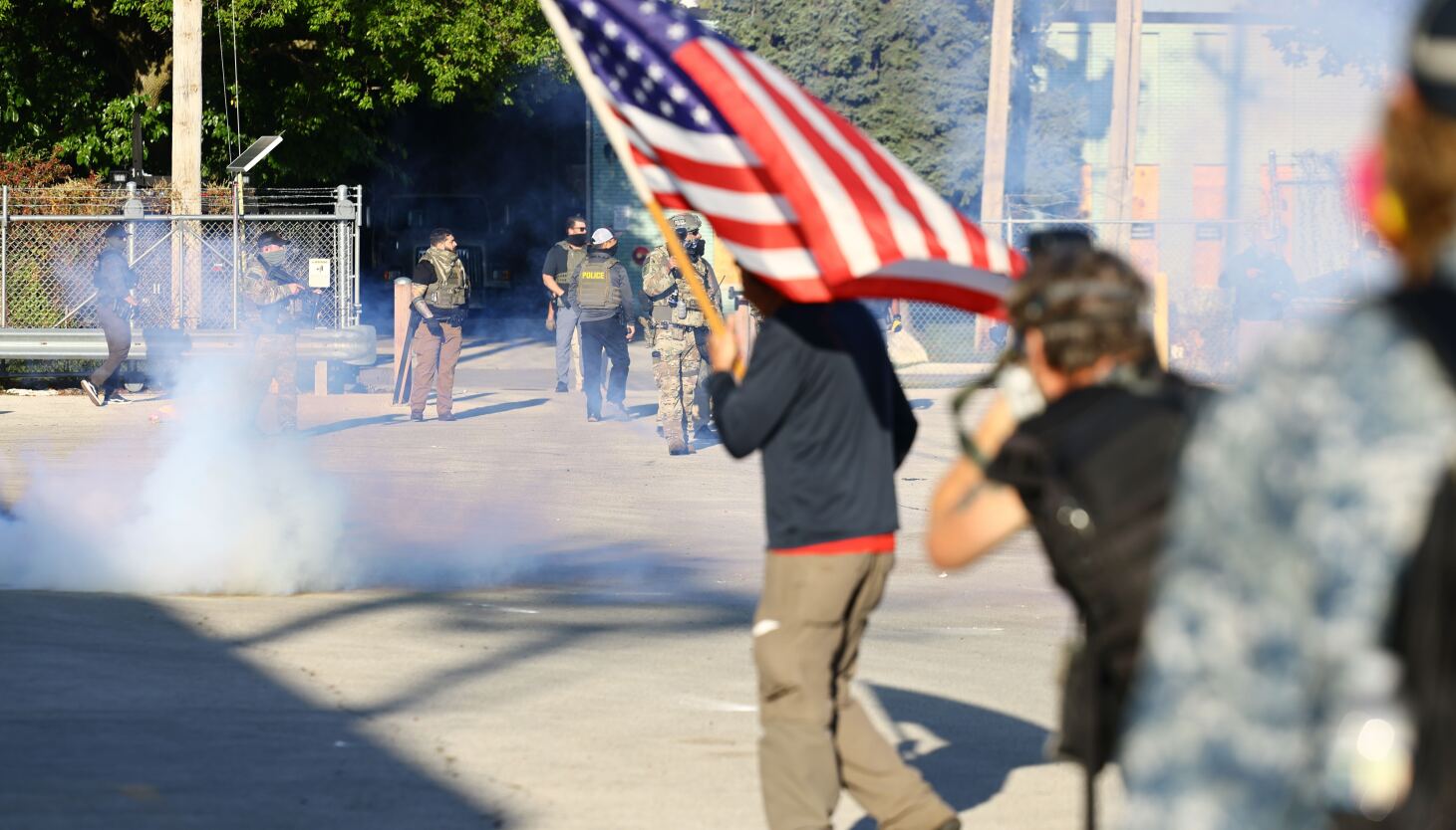 The escalation sent the crowd into a frenzy, and some protesters donned gas masks and started yelling at the federal officer who had fired the non-lethal rounds, saying they had “a right to peacefully protest.”