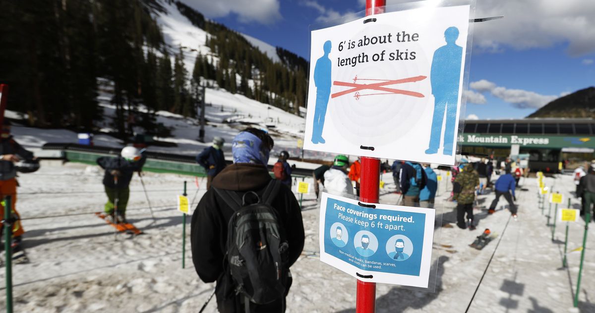 “Lowest risk is coming down the mountain,” he said. “Even if you bump into somebody, crash into someone, it’s fine.” (At least from a COVID-19 perspective, if not an orthopedic one.)