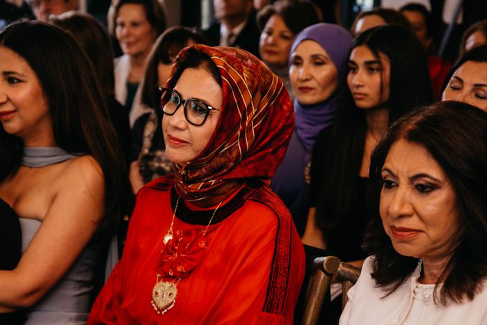 Marwa’s mother, in red, contributed as a kind of “creative director” for the wedding, the bride said, by sourcing ceremonial pieces and clothing in Afghanistan. Photo: Negine Jasmine Sekandari