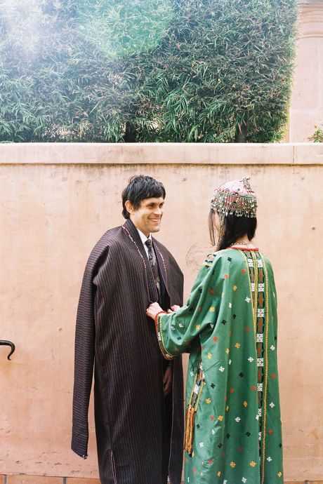 Here we spoke with Marwa Safi and Ben Borden, a Los Angeles–based couple who struggled in their planning to answer a few questions: Why can’t you plan a wedding in six months? How can a celebration be “just Afghan enough,” in honor of the bride’s heritage? And why does every long green dress on the market look like something you’d wear to a beach resort? Fortunately, they both have an eye — Marwa is a creative producer in the fashion industry, while Ben is a teacher and fine artist. They were able to thread the needle for an intimate, semi-traditional celebration in San Diego for 65 guests just last month that featured Uzbek robes, an Islamic ceremony, and a Mamma Mia moment.
