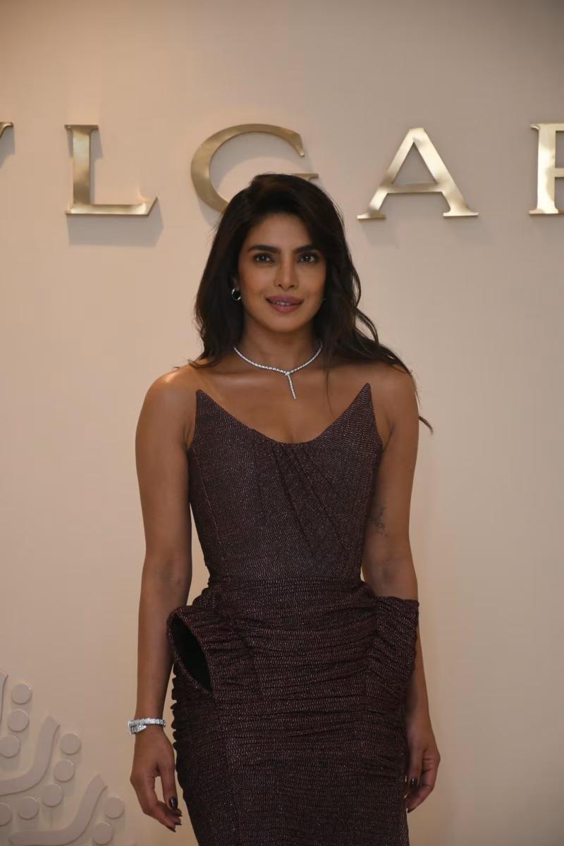 في حفل بولغاري الذي أُقيم في مومباي ، ظهرت بريانكا شوبرا بإلافتة ، وذلك بصفتها السفيرة العالعالعلعلامة. وحضرت معرض Serpenti infinito مرتديةً فستانًا بورغنديًا لامعًا من توقيع دار Maticevski ، ونجحت بإبراز حضورها بأسلوب أنيق ومتوا.