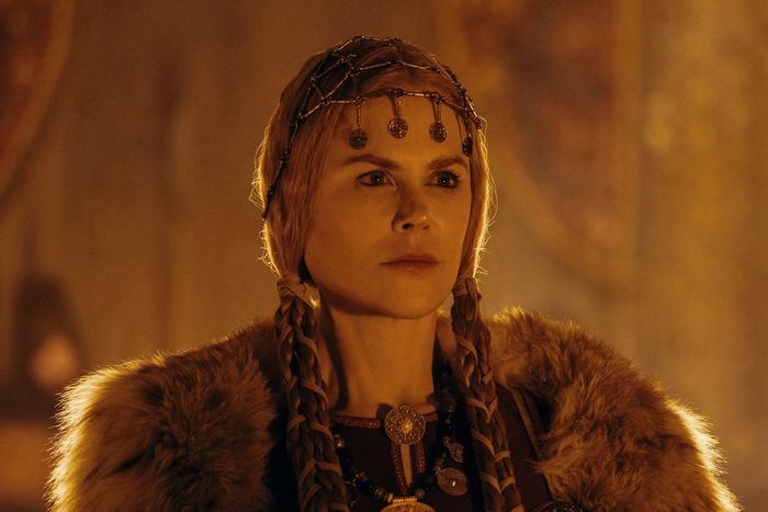 Kidman gives an unhinged performance in Robert Eggers’s highly anticipated Viking epic. Equally unhinged is her extraordinarily long white wig, sometimes styled with braided pigtails. She plays Alexander Skarsgård’s mom just a few years after playing his wife in Big Little Lies — the duality! Despite Eggers practically assembling a film lover’s version of the Avengers, The Northman’s true scene-stealer is Kidman and her volumeless wig. Sorry to Skarsgård’s abs and Willem Dafoe’s enormous faux forehead, which must deal with second and third place, respectively.
