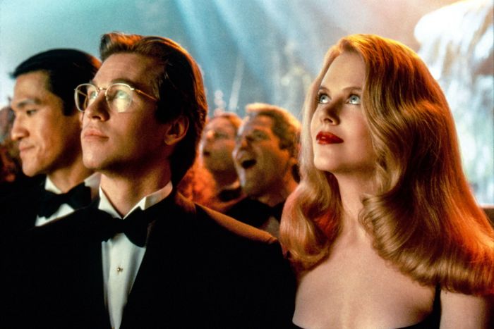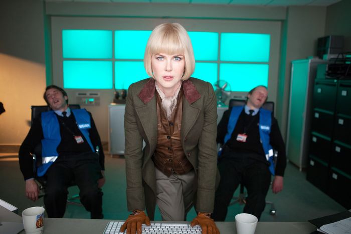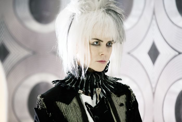 In John Cameron Mitchell’s 1970s-set How to Talk to Girls at Parties, Kidman plays Queen Boadicea, an eccentric punk-rocker alien who looks straight out of a Party City catalogue. Her choppy platinum wig with black streaks — and the film’s overall need to consistently remind us that we are in fact watching a movie about the English punk scene — is a tragically failed attempt at matching the punk aesthetic.