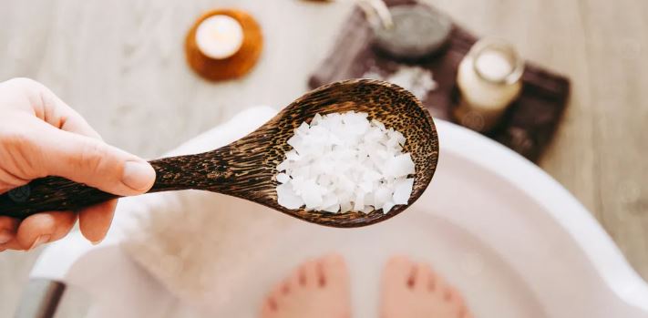 إافة الملح الإنجليزي إلى الماء يُساعد الملح الإنجليزي على تخفيف العدوى الفطرية القدمين.