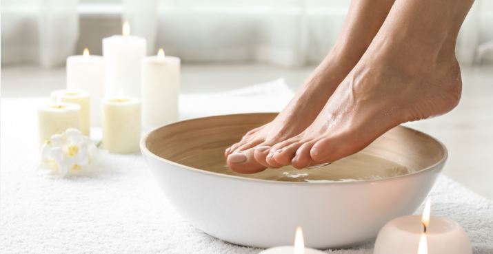 يقلل نقع القدمين من التورم ويمنع نمو البكتيريا في الجروح أو تحت الأظافر.