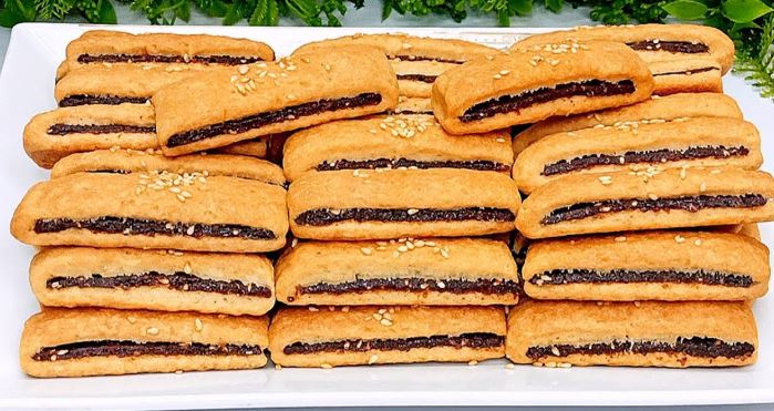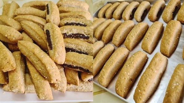 ثم تشكل العجوة لصوابع و تحشي في العجين.