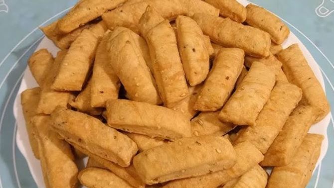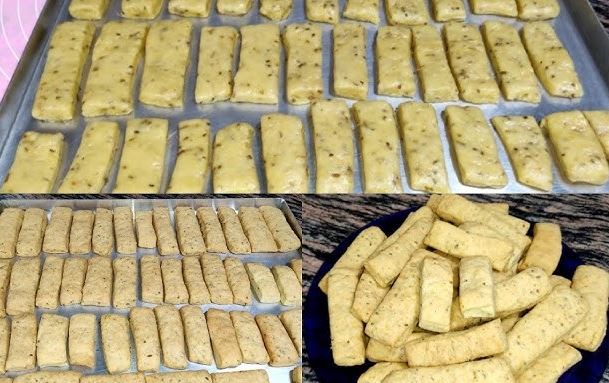 ثم تشكل العجينة اصابع وتوضع في صينية خبز وتترك نصف ساعة قبل تسويتها.