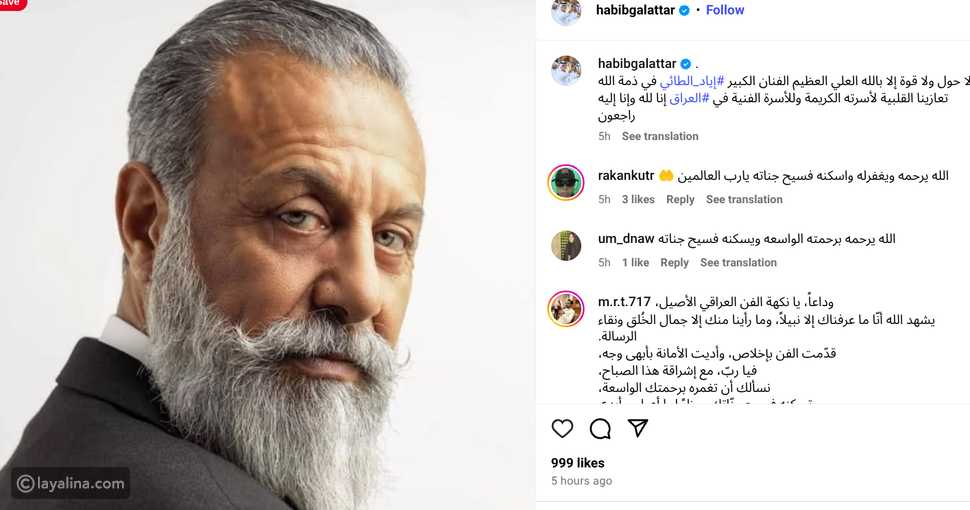 الحزن على رحيل إياد الطائي تجاوز حدود العراق ، ذ ن نعاه الفنان الإماتي حبيب غلوم عبر حسابه إنستغرام ، مًام ، مًام ، مًام التعازي إلى أسرته ومحبيه ، ومعتبرًا أن غيابه خسارة للوسس الفني العربي بأسره.
