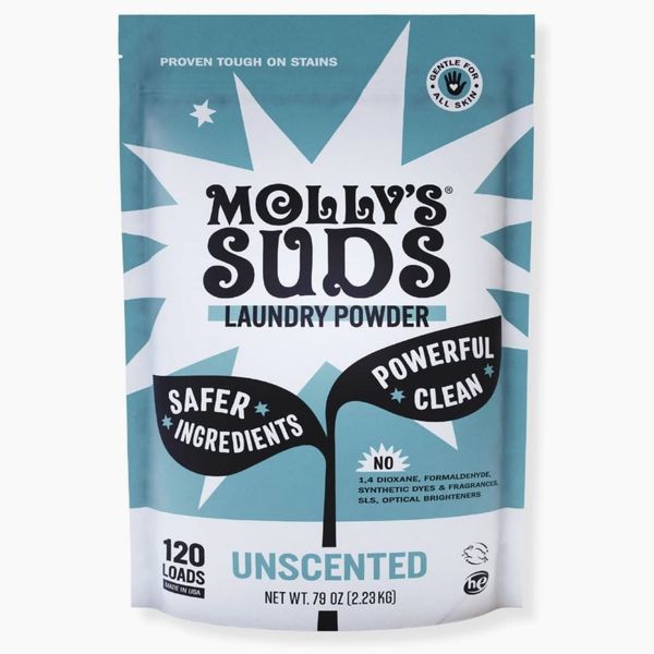 Since powder detergent has a longer shelf life, it doesn’t need all of the preservatives that a liquid formula calls for. It’s part of why you get such short ingredient lists, like the four-part powder from Molly’s Suds. This one is a crowd favorite since it’s safe for sensitive skin, babies, pregnant people, and generally dirty folks. Just be warned that it’s gentle, so you may need to add an extra scoop (or two) for deep cleans.