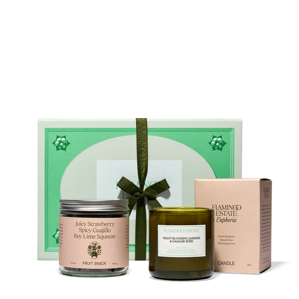 Flamingo Estate Offers Amazing Olive Oils and Kitchen Essentials, but if she does doesn’t want all of that, consider gifting this set instead. It Features the brand’s Rosy Jasmine Candle and Spicy But Sweet Strawberry Fruit Snacks that she can indulge in dural a self-core night.