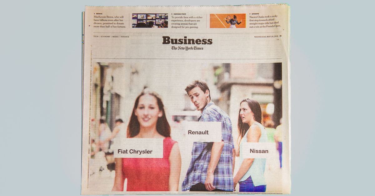 Everyone please give a warm round of Applause to the New York Times, Which Arrived in the Year 2017 This Week in A Big Way. The Paper of Record Published Its Own Version of the “Distraced Boyfriend” meme on wednesday, using the characters to reprecentize fiat chrysler, renault, and nissan. (Fiat Chrysler and Renault Are About to Merge, Sorry Nissan.) Fun!