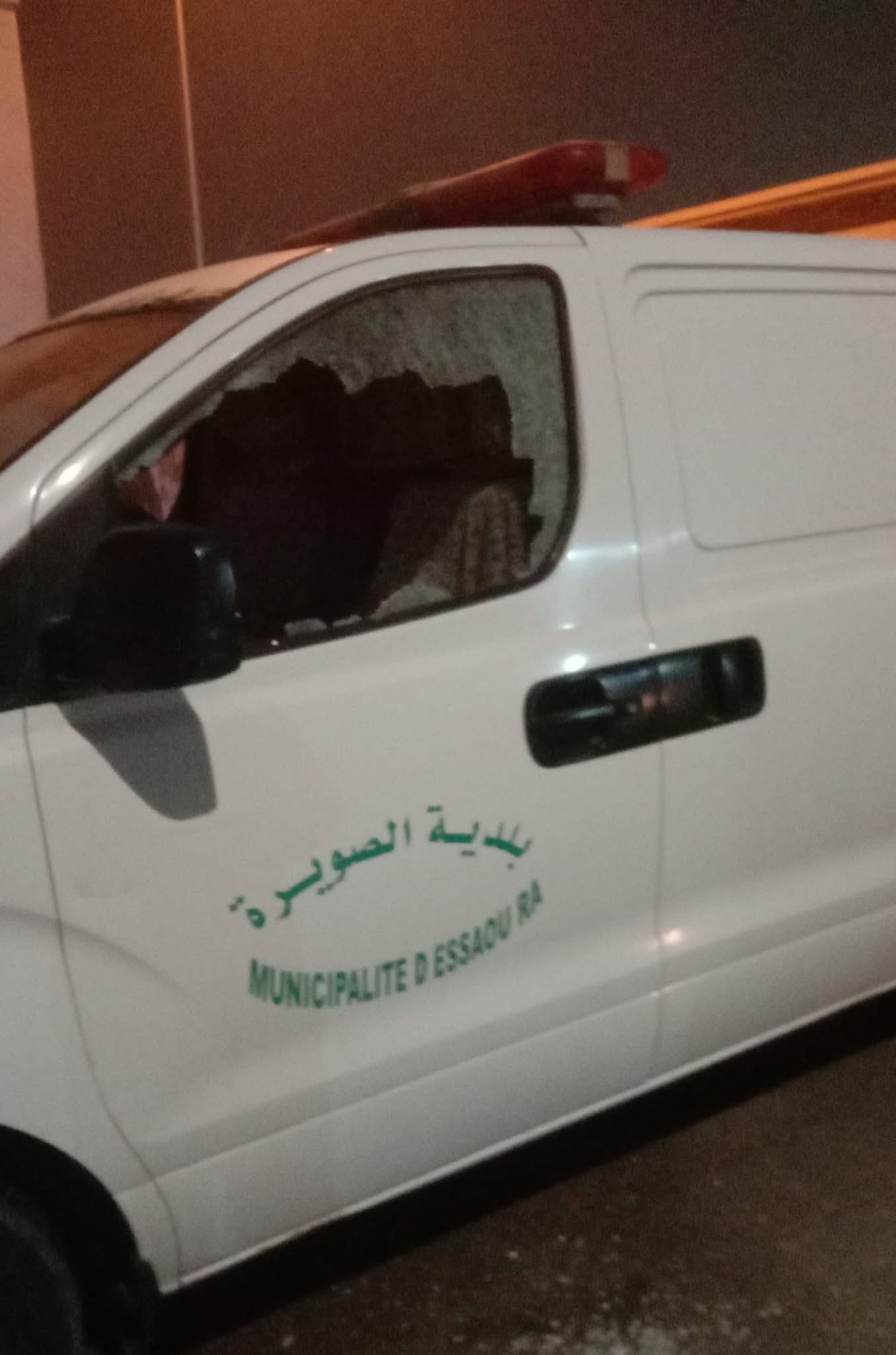 كما لم تسلم حتى سيارة لنقل الأموات من الرشق بالحجارة وتهشيم زجاجها.