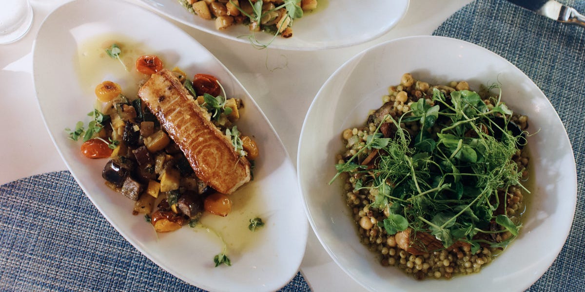 To be specific, this was “Wood Oven roasted King Trumpets Mushrooms with Basil Pesto Fregola (A Type of Pearl-Shaped Pasta), Leeks, Toasted Chickpeas, and Rosemary Oil,” For The Menu.