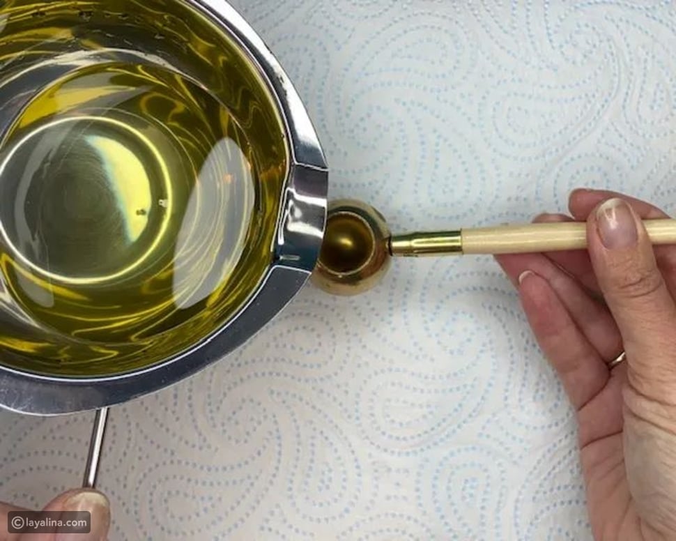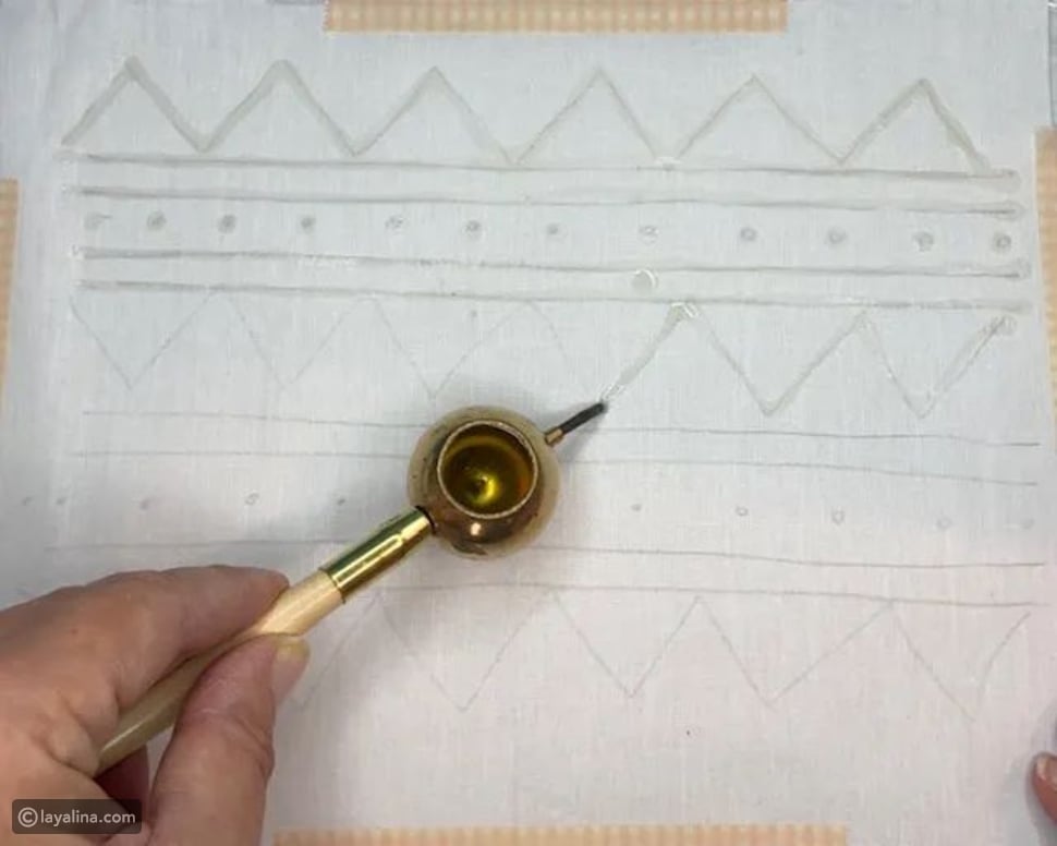 طبق الشمع باستخدام فرشاة ونقاط من الشمع باستخدام كيستكا.