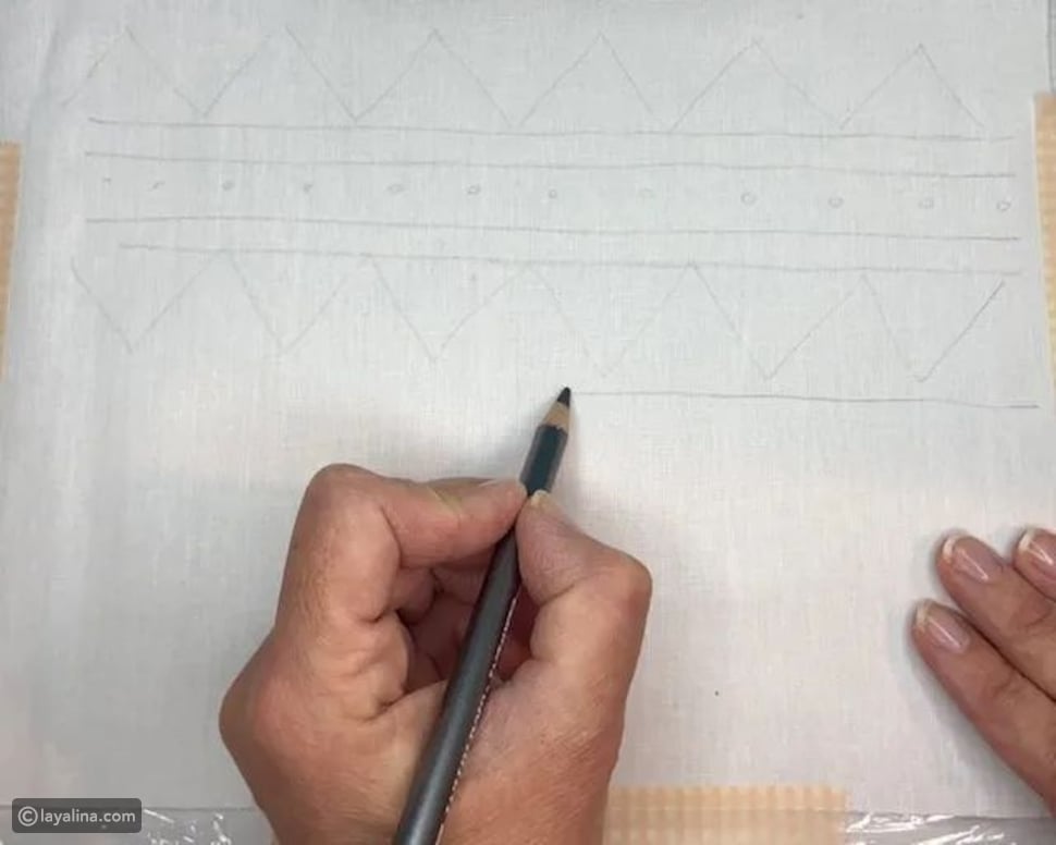 انقع الأقمشة القطنية الخاصة في الماء البارد ليوم كامل حتى يتخلص القمن النشا الذي يغلفه ثم جم جيداُ ب. ثم ارسم التصميم أولاً على الورق ثم تتبعه على قماش قطني أبيض باستخدام رصاص 2B. ثم الشمع على المناطق التي تريد أن تبقيها بيضاء.